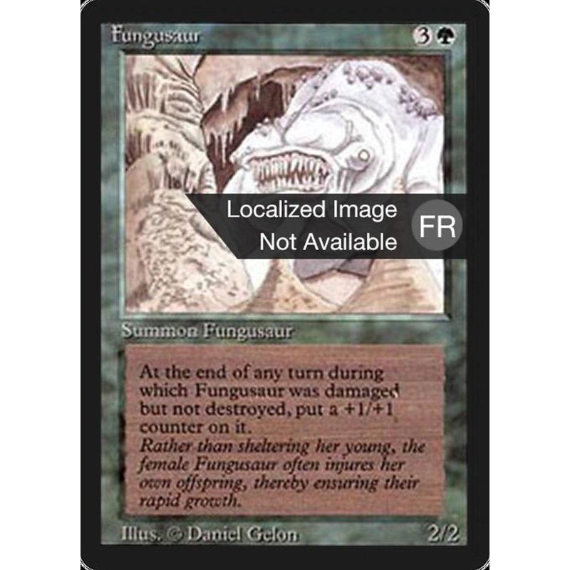 Ensemble: Bordure noire trangre Taper: Crature : champignon et dinosaure Raret: Rare Cot: {3}{G} chaque fois que le Fungusaur subit des blessures, mettez-lui un marqueur +1/+1.
