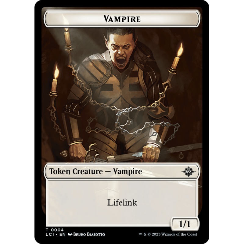 Set: The Lost Caverns of Ixalan Tokens Type: Token Creature Vampire Rarity: Common Lifelink Reverse Type: Token Creature Dinosaur